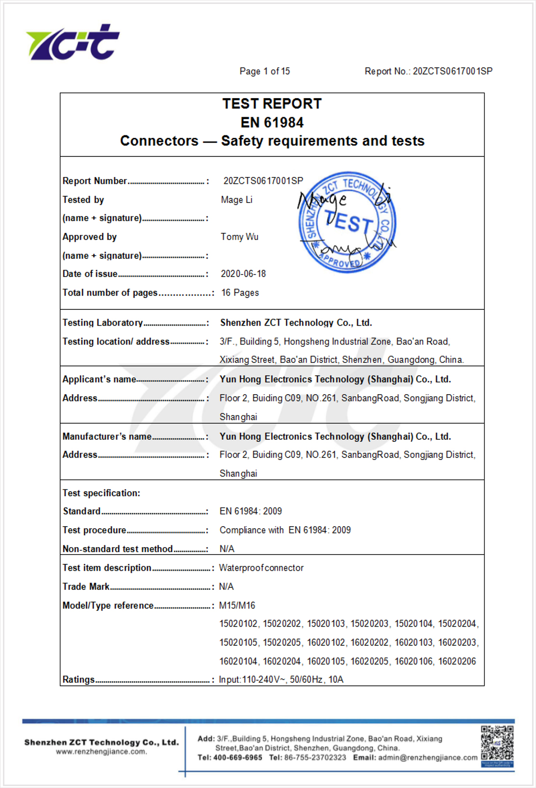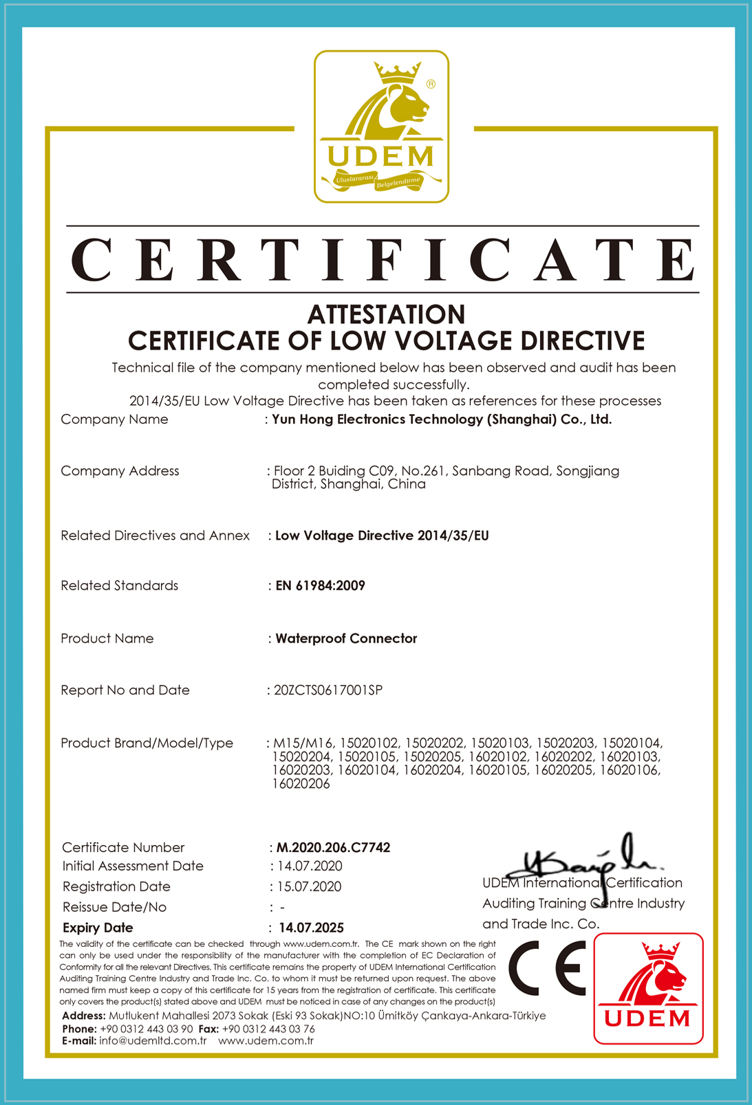 裝配式防水連接器CE證書